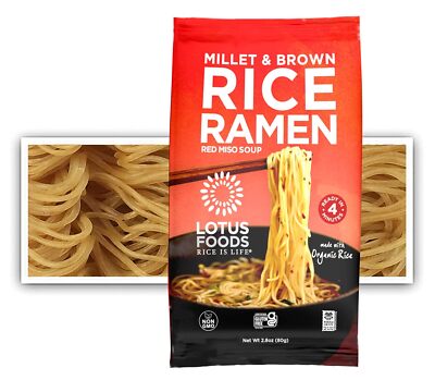 Organic Millet and Brown Rice Ramen with Miso Soup, 2.8 Ounce -- 10 per case. brings you Millet and Brown Rice Ramen, traditional Japanese-style noodles made from our specialty rice instead of wheat In addition to being gluten free, millet and brown rice are some of the most nutritious and easily digestible grains. Our Millet and Brown Rice Ramen has a delicious nutty taste and is a good source of fiber and protein. Add the savory red miso broth to our Millet and Brown Rice Ramen for a wholesome bowl of noodle soup. For a complete meal, add your favorite veggies and protein. Ready to eat in just 4 minutes. Cooks in 4 minutes 25 Percent less sodium than regular ramen soup. Gluten Free Whole grain and heart healthy Made with Organic Rice High in fiber and protein Made with Non-GMO ingredients Low Fat Vegan 70 Percentage Organic, Kosher, Vegan, Gluten Free, Wheat Free, Dairy Free